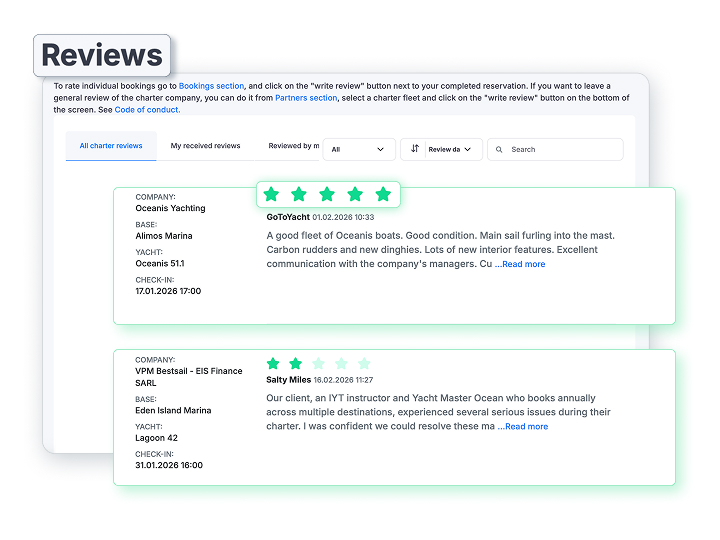 The star ratings and reviews will be visible to each Charter Operator for their fleet as well as all agents using the Booking Manager Portal helping them decide which company to book with.