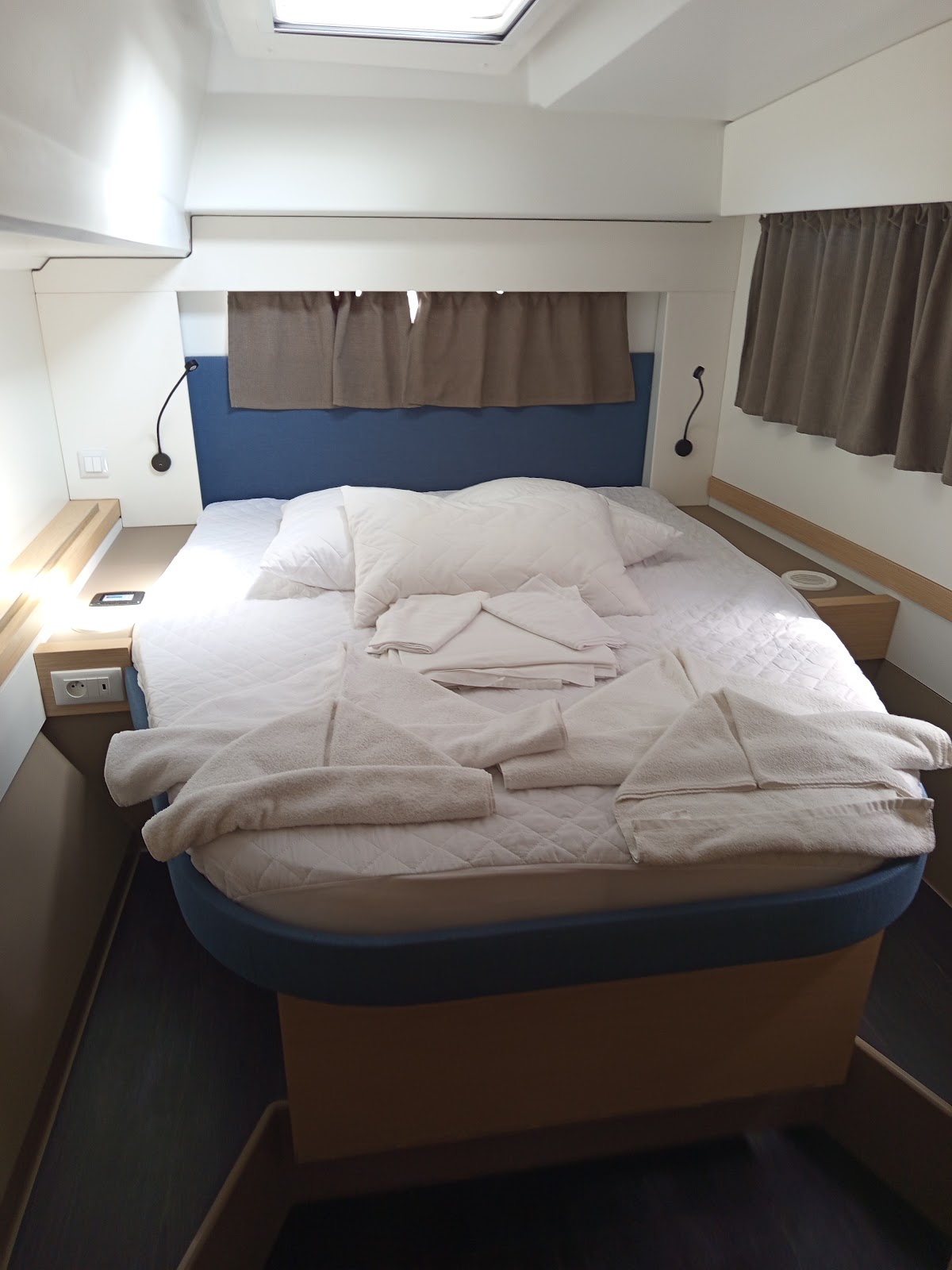 USB sockets in all cabins, Fans in all cabins, electric toilets, Air Condition, Generator 220V, electric winch, Electric fridge, Gas oven, Log & speed, VHF, GPS plotter in Cockpit, Depth sounder, Autopilot, Water maker, solar panel, Radio+blue tooth+USB, Inverter 2000W, Nespresso machine