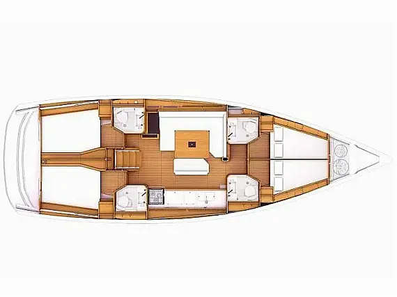 | Kojen: | 12 (8 people in the cabins + 2 in the saloon area + 2 in the bow cabins) |
