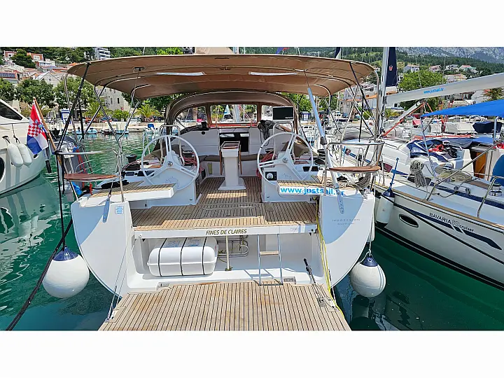 Elan Impression 50 – Fines de Claires The Elan Impression 50 is known across the Adriatic as one of the most comfortable and versatile sailing yachts in her class. With her generous volume, bright interior, and spacious cockpit, she feels like a private villa at sea – and yet she sails like a true cruiser, balanced and responsive under full sails. What makes Fines de Claires unique is that she is the most equipped Elan Impression 50 on the Adriatic. Every feature has been carefully chosen to enhance both luxury and independence, allowing you to enjoy sailing without compromise. - Comfort and Space Full air conditioning throughout all cabins and the salon Six cabins in total, including a dedicated skipper’s cabin with private shower and toilet A wide, luminous salon with panoramic windows Spacious cockpit with twin helm, large dining area, and a deck fridge for refreshments Electric swimming platform for easy access to the sea - Power and Safety CR Yanmar engine and onboard generator for complete autonomy Oversized LiFePO₄ batteries with fast charging capacity 24V anchor windlass and bow thruster – strong, safe and effortless maneuvering AIS transceiver and professional-grade navigation electronics Electric main sail hoist for convenient sail handling - Pure Sailing Pleasure Full batten sails designed for performance and long passages Stable, reliable hull form – ideal for families and groups who enjoy sailing in comfort Smooth and secure handling, even with a smaller crew The Complete Adriatic Experience With her balance of luxury, space, and true sailing character, Fines de Claires is more than a charter yacht – she is a yacht for sailors who want to feel the sea without giving up the comforts of home. Whether exploring quiet coves, enjoying lively islands, or sailing under full sails across open waters, this yacht delivers unforgettable Adriatic moments.