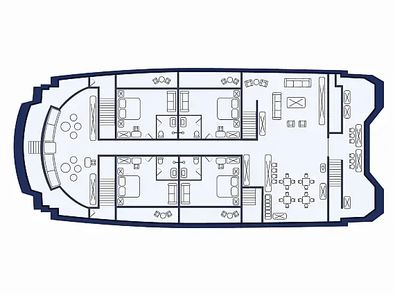 | Cabins: | 3 double cabins included 1 flexibility cabin |