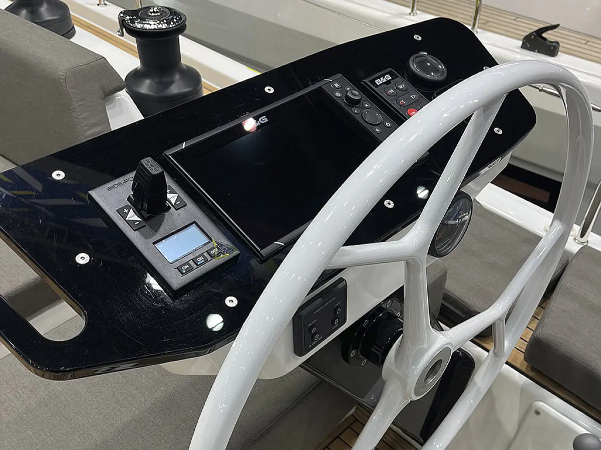 AIS, Batterieladegerät, Fernglas, Bugstrahlruder, Kompass, Tiefenmesser, GPS Plotter im Cockpit, Landstromanschluss, Multifunktionsanzeige, Seekarten (Papier und elektronisch), Hafenhandbuch, Geschwingigkeitsmesser, Funkgerät, Funkgerät mit GMDSS, Windmesser