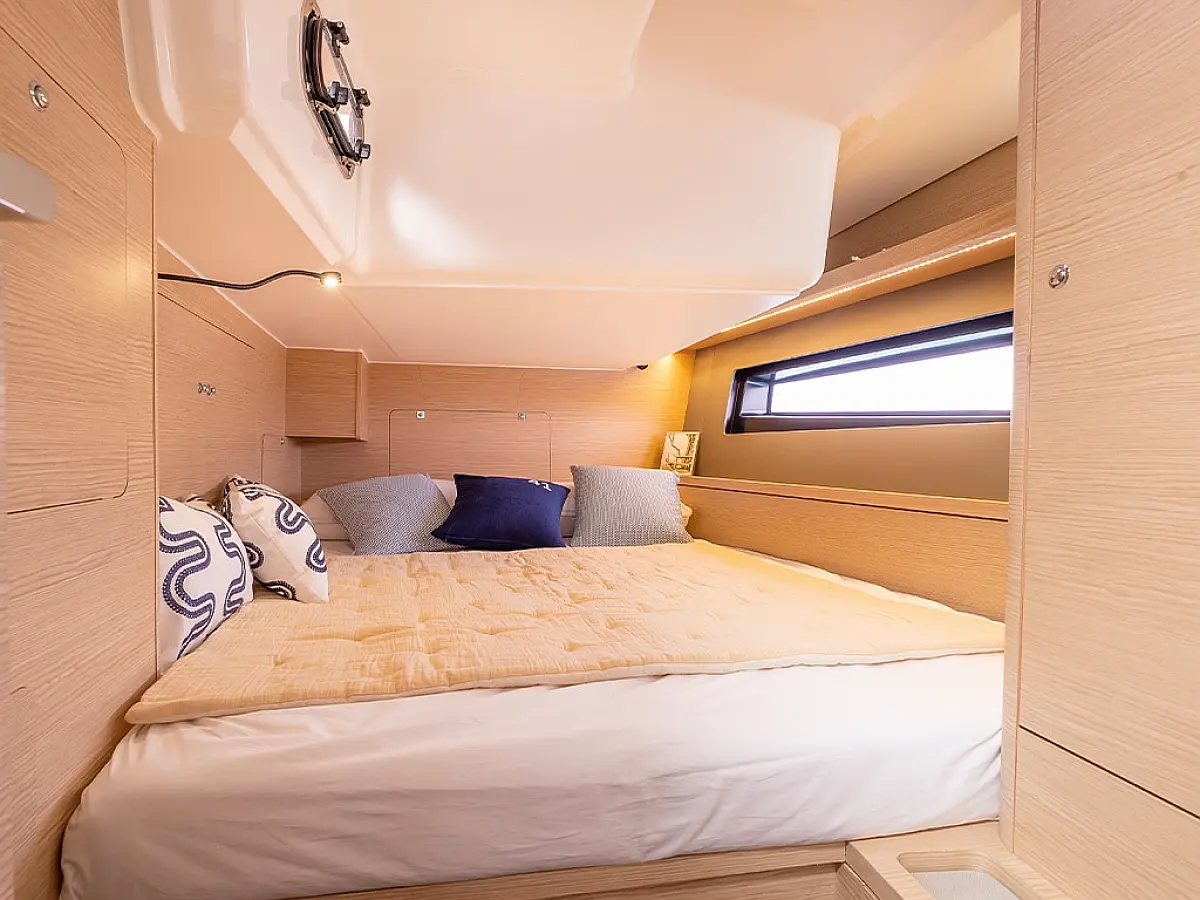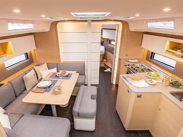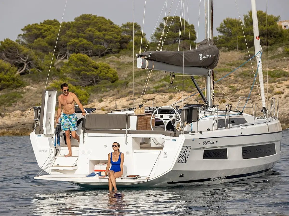 The new Dufour 41 is a true masterpiece of sailing engineering - perfectly suited for demanding charter guests. With its powerful sail configuration and stable hull, the new Dufour 41 offers an impressive sailing experience. The new striking modern design, the large space on and below deck of this yacht will exceed your expectations of comfort and make your sailing holiday in the Balearics incomparable. At the control stations, large displays provide all the necessary instruments, incl. autopilot modern and clearly arranged. The spacious cockpit with outer cushions is ideal for sociable evenings. The grill with wetbar under the helmsmans seat can be conveniently operated from the bathing platform. Music is also provided in the saloon and cockpit, all you have to do is select your favourite radio station or connect your device via bluetooth. The spacious 3 double cabins with USB ports in each cabin, 3 bathrooms and the comfortable saloon offer plenty of space and comfort to relax and enjoy for a charter crew of 6 to 8 people. The hatches are equipped with roller blinds and fly screens. This sailing vessel also has various useful and pleasant additional features that make you self-sufficient from ports. Mallorca and the Balearic Islands are known for their stunning coastal landscapes, crystal clear waters and picturesque bays. With this Dufour 41 you have the opportunity to experience this beauty up close and spend unforgettable days. The Dufour 41 gives you the freedom to explore the islands at your own pace and gusto. Equipment: furling mainsail, self-tacking jib, 3 double cabins, 3 bathrooms, bow thruster, barbecue and wetbar, dinghy